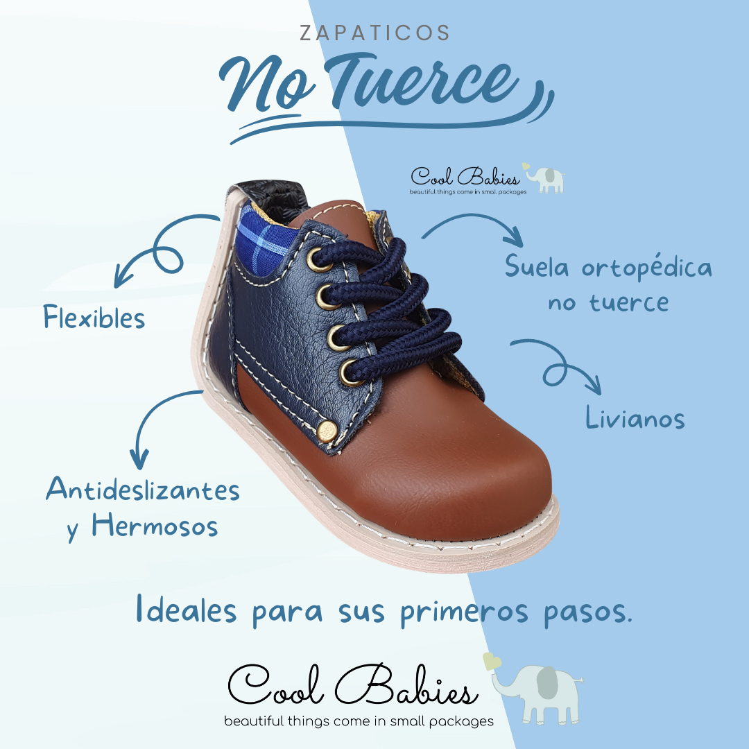 Zapaticos No Tuerce, diseñados con los mejores materiales para apoyar los primeros pasos de tu pequeño. Su suela flexible y antideslizante ofrece seguridad al caminar, mientras que su divertido diseño se combina fácilmente con cualquier outfit.
