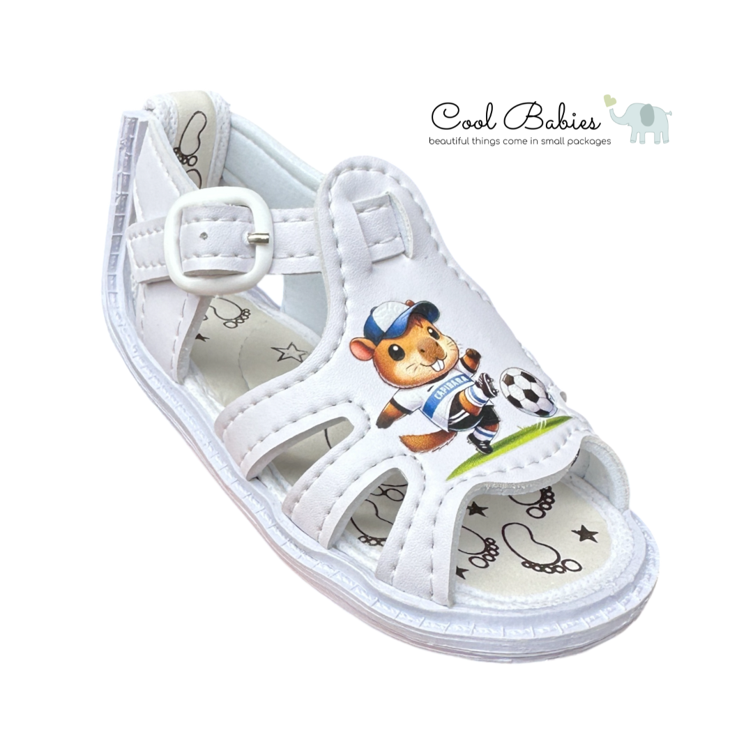 Su diseño en color blanca con aplique decorativo de Capibara y práctico ajuste con hebilla garantiza funcionalidad, frescura y estilo premium en cada paso. Combina fácilmente con cualquier outfit, desde conjuntos deportivos hasta looks casuales para los días más activos. Un modelo ligero, cómodo y con el sello premium de Cool Babies.