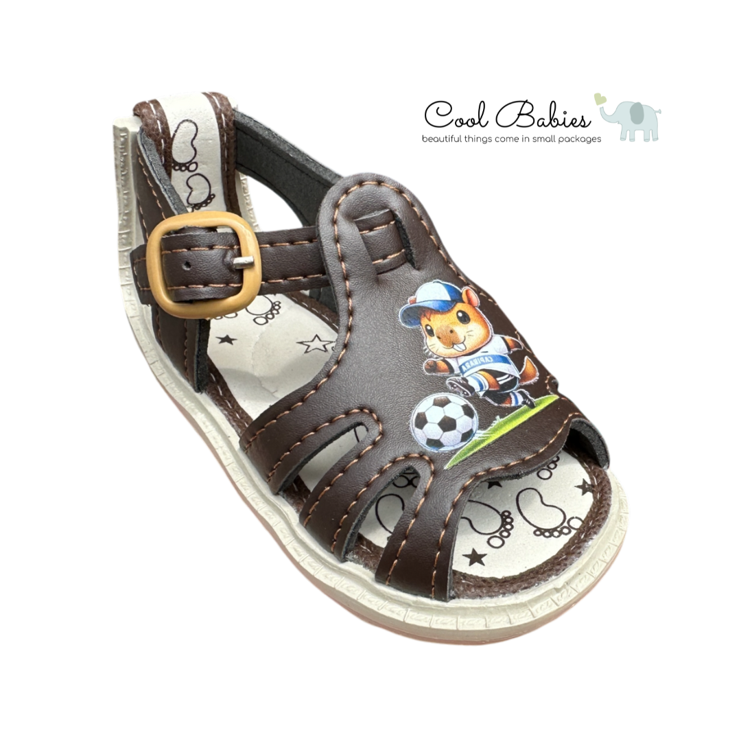 Su diseño en color café con aplique decorativo de Capibara y práctico ajuste con hebilla garantiza funcionalidad, frescura y estilo premium en cada paso. Combina fácilmente con cualquier outfit, desde conjuntos deportivos hasta looks casuales para los días más activos. Un modelo ligero, cómodo y con el sello premium de Cool Babies.